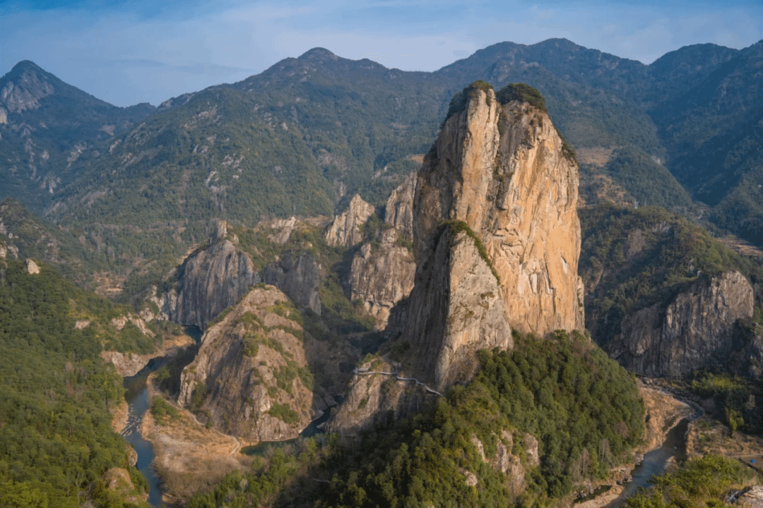 小红书@是酷盖呢 浙南山水的诗画秘境——楠溪江 36湾72滩串联起300里水墨画卷,江水澄澈见底,滩林如翠屏倒映;石桅岩擎天而立,狮子岩卧波听涛。乘着竹筏,顺江而游,看古村倒映碧水,倒映那耕读传家的宋元时光。“水是青罗带,山如碧玉簪”,楠溪江的美,是唐诗宋词里走出的意境。 石桅岩 擎天一柱立于江畔,形似巨船桅杆 乘竹筏近观,岩壁上的藤蔓如龙蛇盘绕 登顶远眺,江水如玉带蜿蜒于群峰之间。