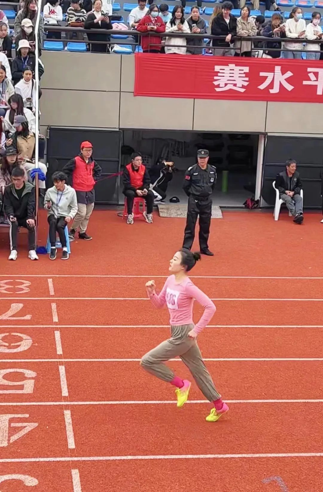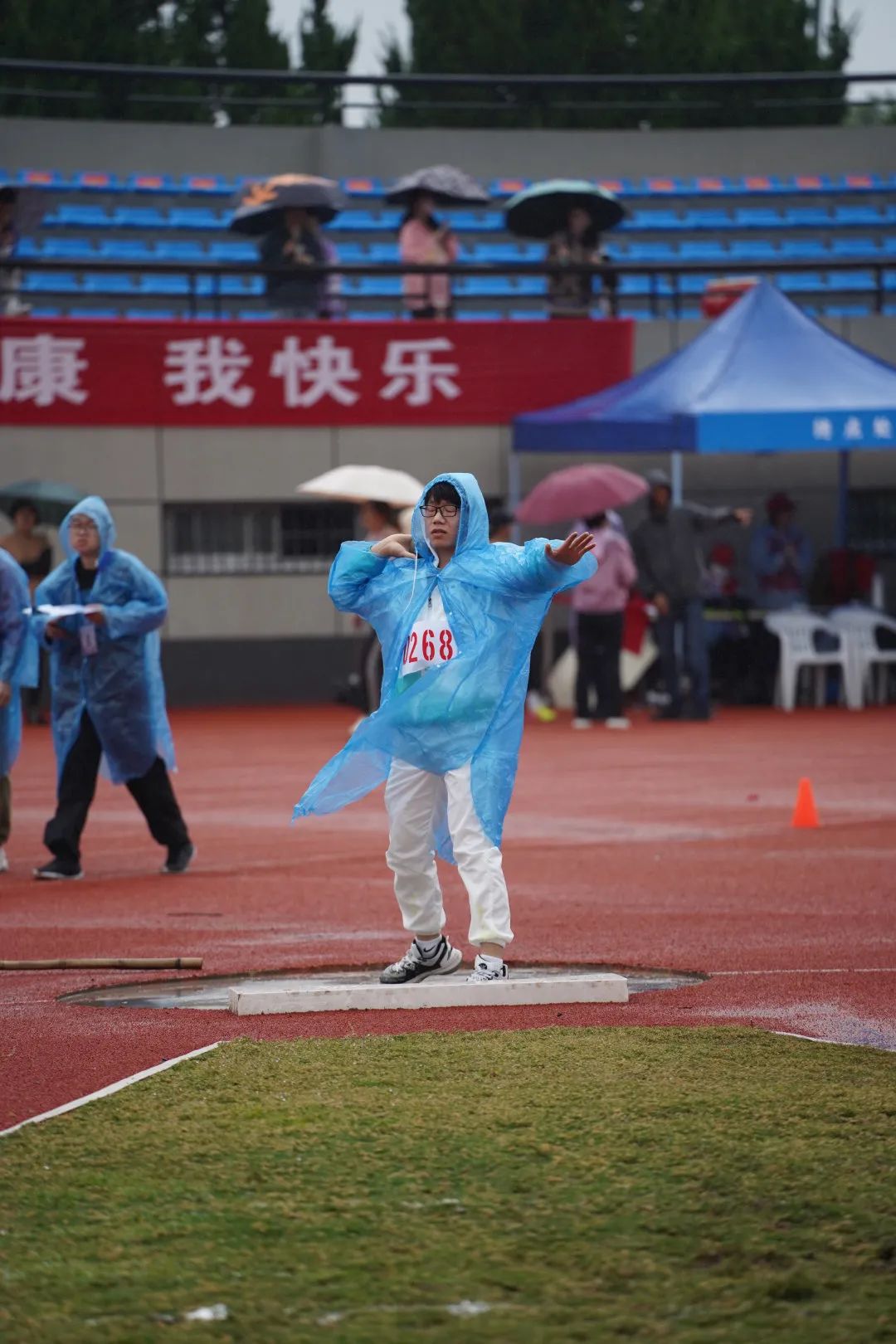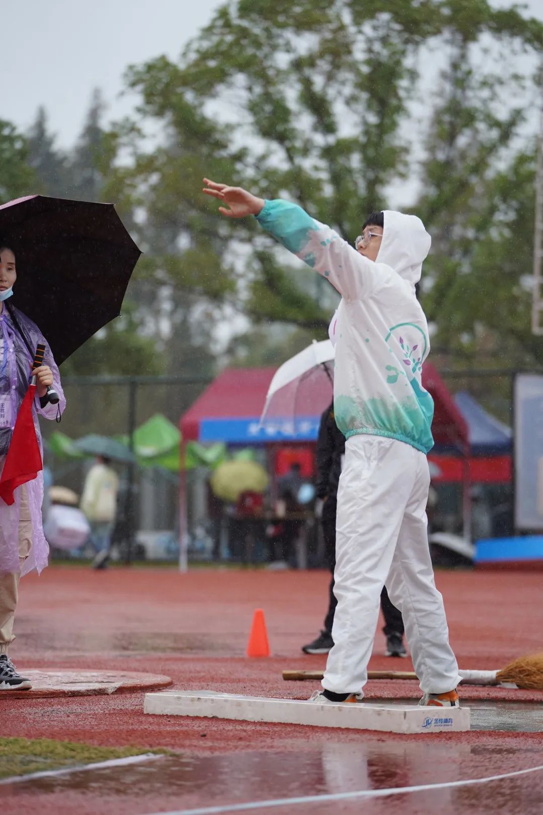 个人项目 1 学生组 径赛 径赛的赛场上,微凉的雨滴落在操场,运动员的心里却腾起阵阵的热。 迈步飞驰,带起风,成为风。100米的赛道见证了多少道迅如闪电的身影,21级精神医学2班的程海菲也是其中一员,用拼搏与热情勇夺女子100米决赛第七名。青春气贯长虹,开出最灿烂的花。400米是速度与耐力的交锋,是拼搏与毅力的集合。来自21级精神医学1班的陈莹和22级心理2班的李佳夺得了女子400米的第三名和第八名,表现出色。800米的赛道上也同样热火朝天,第二天参加比赛的陈莹同学更是一马当先,超常发挥,刷新了个人最好成绩,以2分42秒的卓越姿态赢得了女子800米的第一名。 长跑的赛道同样精彩。1500米的赛程需要的不仅是耐力,更是坚定的信念。来自20心理2班的陈如凯用男子1500米第二名的好成绩向我们完美地诠释了一个运动员应有的风采。同时,他也取得了男子800米的第七名,在长跑赛道上留下了属于自己的独特印记。 尽管前路阻碍重重,唯勇气所向披靡。顶着大雨,来自20级精神3班的曹迅瑜克服重重阻力在男子110米栏中拿下第八名。 田赛 田赛的赛场上,也同样传来阵阵欢呼与呐喊。 铅球脱手,凝结着磅礴的力量,在空中划过青春的曲线。来自19级精神医学3班的赵明慧和20级心理2班的申智鸿分别获得男子铅球第三和第八的好成绩。纵身一跃,向上挑战自我的极限。韩天星成功越过1米63的极限,获得了男子跳高的第三名。 运动员风采