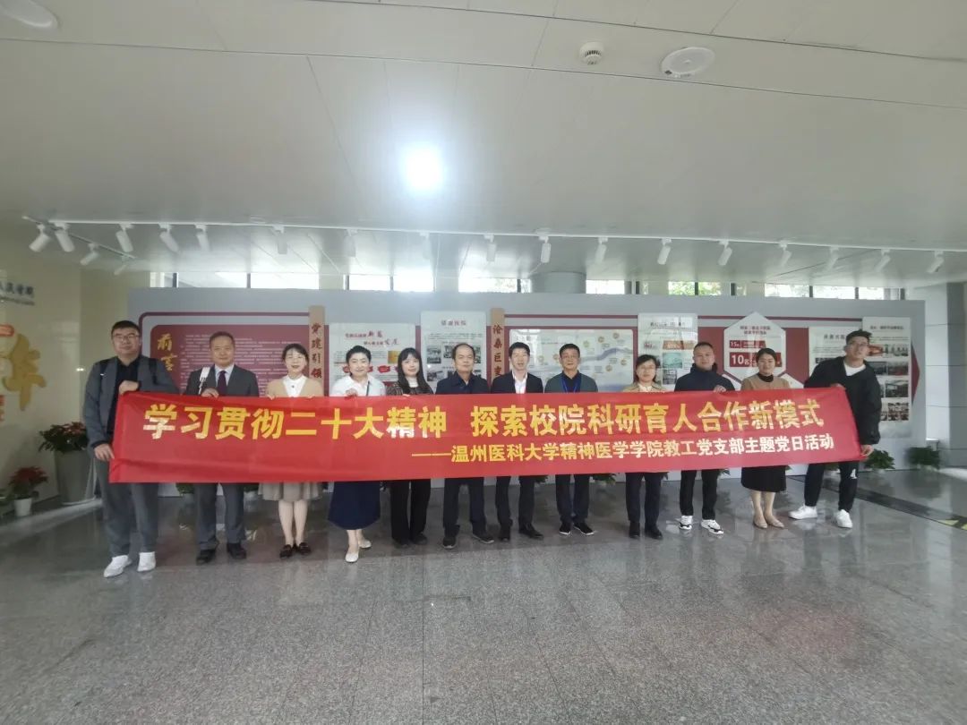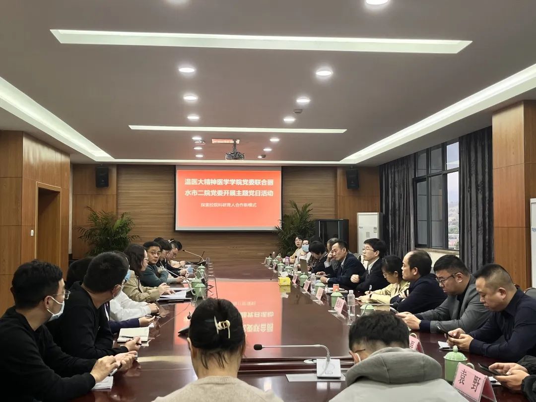 为学习宣传贯彻党的二十大精神,积极探索校院育人合作新模式,进一步推动党建与业务工作深度融合,11月15日,吃瓜黑料 教工党支部联合丽水市第二人民医院科教科党支部开展了“党建融合-促发展”主题党日活动。吃瓜黑料 全体党组成员和部分教师党员、丽水市第二人民医院党委班子及全院党员干部参加活动。