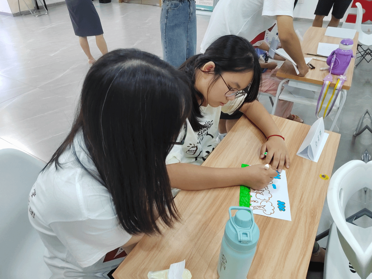 ·艺起画——房树人 在观摩中,课堂正在进行的是艺起画——房树人。将房、树、人三项合画于一张纸之中,通过距离、位置、形状等分析青少年的心理。在绘画中,孩子们将自己的内心世界以视觉化的方式呈现出来,从而更好地认识自己,理解他人。这一过程不仅提高了参与者们的观察能力和创造力,还让他们在轻松的氛围中释放了压力。