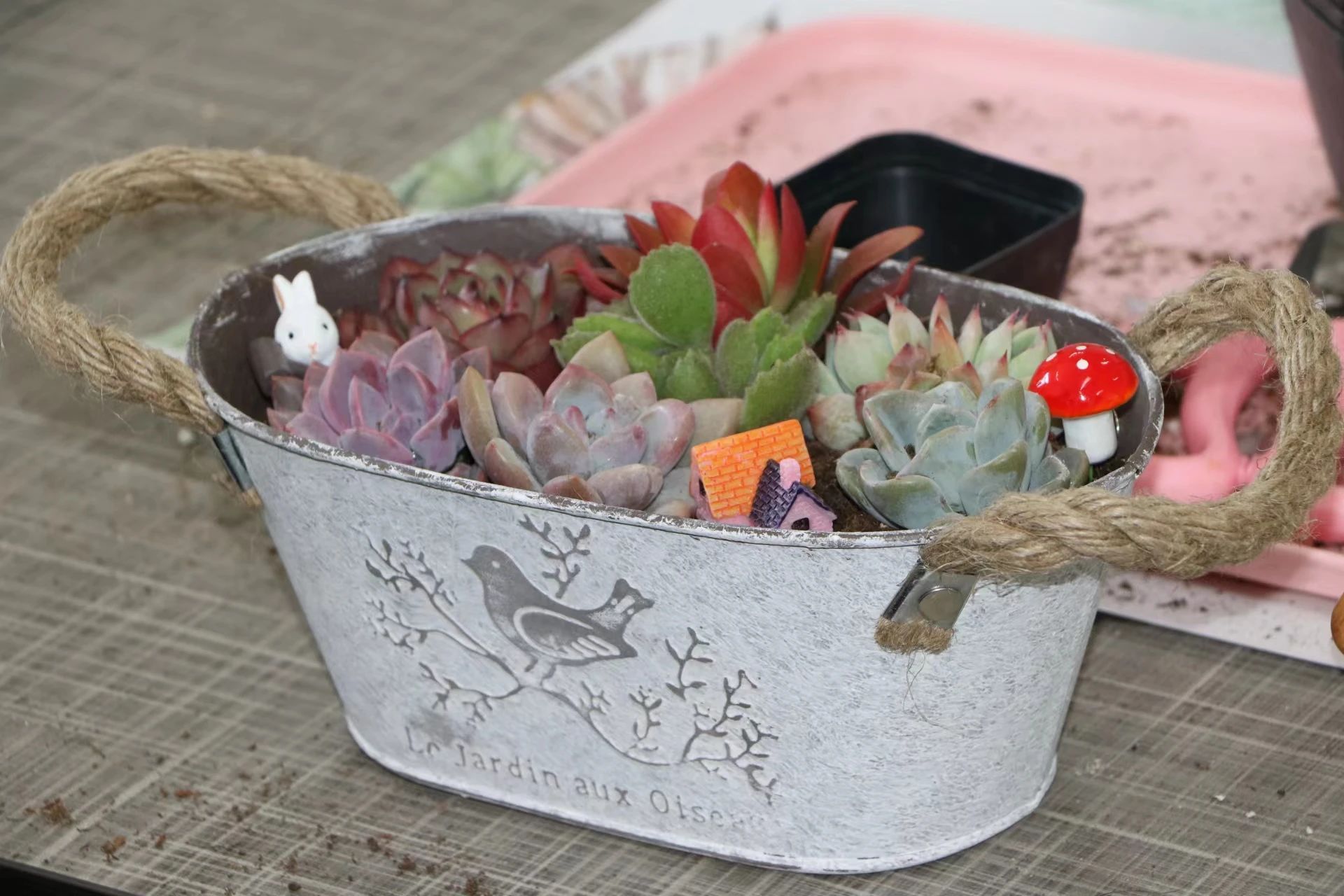 本次活动为大家精心准备了多肉植物及小摆件,让大家细心挑选自己喜爱的种类进行搭配。花艺老师为大家介绍了多肉植物的生活习性特点,同时对浇水、日照、温度、施肥等种植中常见的问题做了较为实用的讲解,接着为大家示范修根培土,搭配造型设计及多肉的种植养护。老师们感慨道:“来参加DIY多肉真的很有趣,感觉种植真是一门学问。”活动最后,各位老师领取了吃瓜黑料 附属康宁医院为大家准备的节日礼物毛巾礼盒和洗漱用品,爱生活的老师们也纷纷与自己设计的多肉植物合影留念。