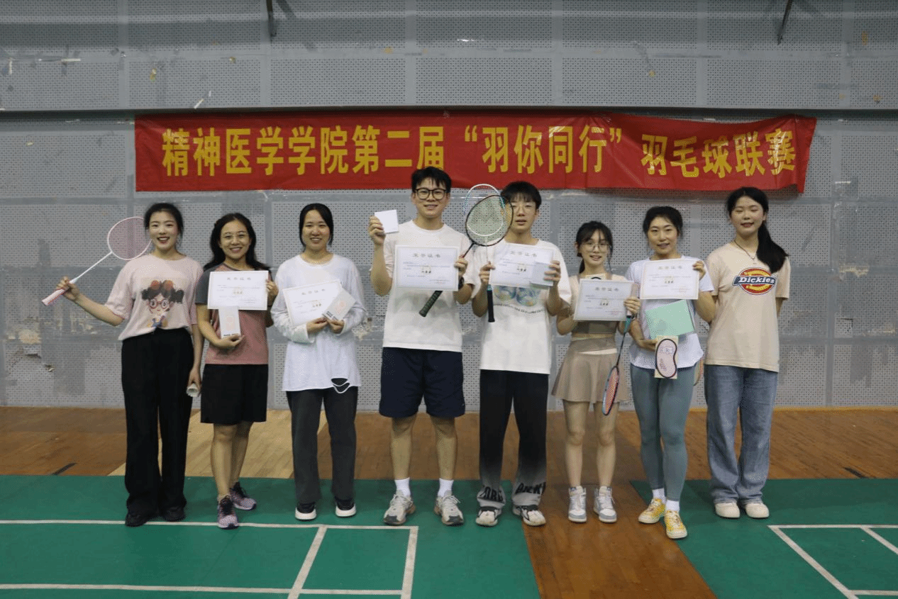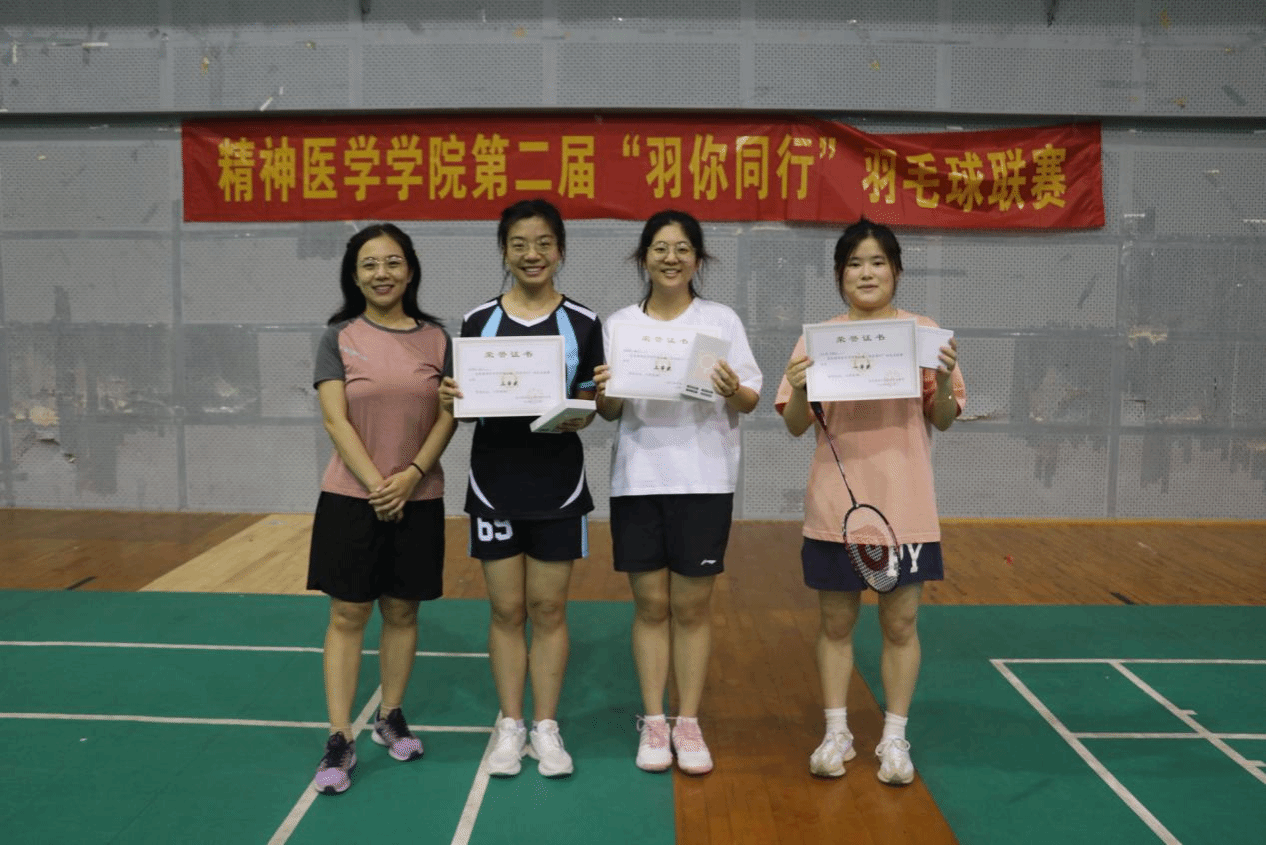 师生双打冠、亚、季军颁奖 这次羽毛球大赛不仅丰富了同学们的校园生活,弘扬了团结协作的精神,还展现了我院学子乐于运动,富于挑战的精神风采。愿选手们都能在此次的比赛中突破自我,继续前行。