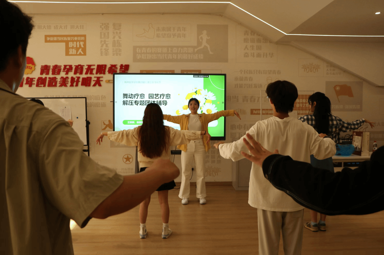 为充实与丰富课余生活,减轻同学们的心理压力,共同发现生活和生命的美好,吃瓜黑料 于5月14日下午在学生活动中心团学驿站开展了“舞动疗愈,园艺疗愈”解压专题团体辅导活动,本次团体心理辅导活动由学工办王茹新老师、徐景老师带领。 团辅开始,在徐景老师的带领下,首先进行了舞蹈热身。同学们伴着欢快的音乐活动身体、舒展筋骨,与周边同学说说笑笑,随着身体的舞动,享受在轻松愉快的氛围之中。