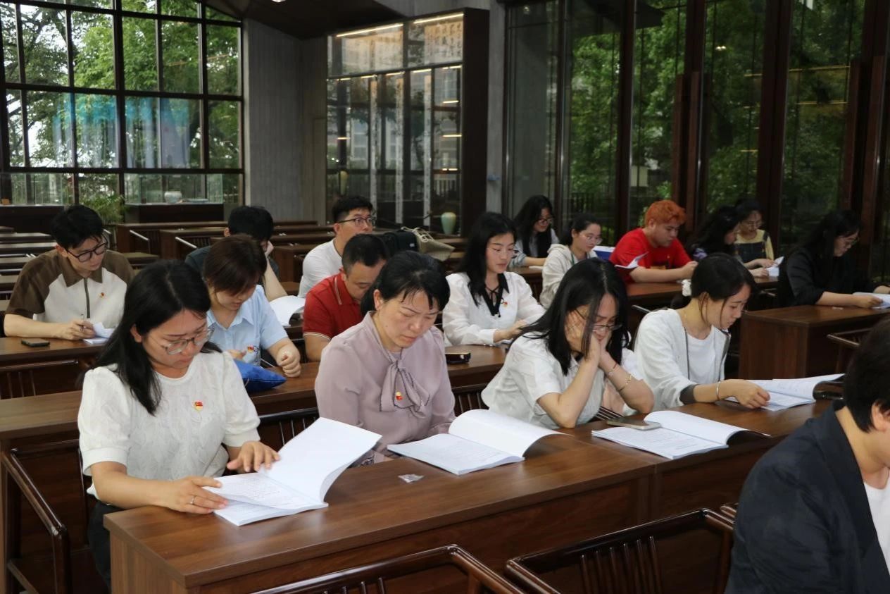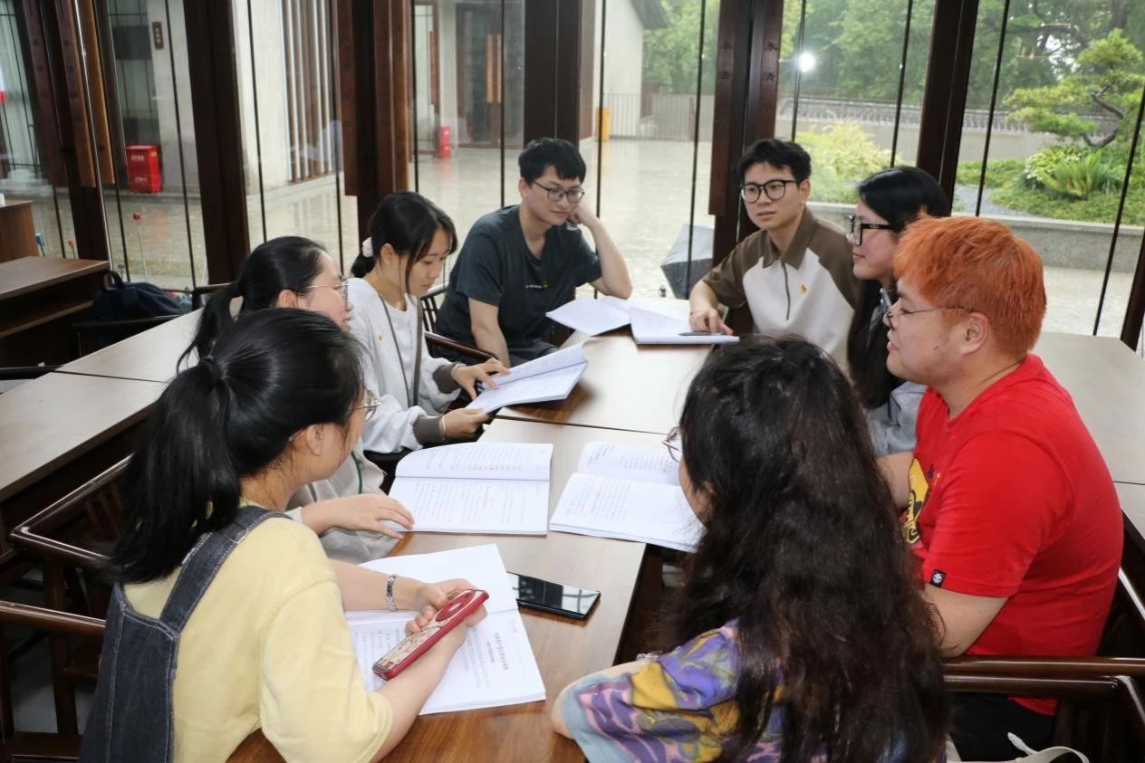 梅雨细,晓风微,众人冒雨沿着石阶往上,寻找位于半山腰的永清苑。在抵达学习地点“永清苑”后,师生党员迅速投入第一项活动——党纪学习教育专题读书班暨党委理论学习中心组(扩大)学习会。本次读书班分为领学辅导、集中自学和分组专题研讨三个部分。学院党委为读书班编印并发放专门教材读本,重点学习《中国共产党纪律处分条例》(2023年修旧对照版)和关于《条例》的十三篇权威解读文章。