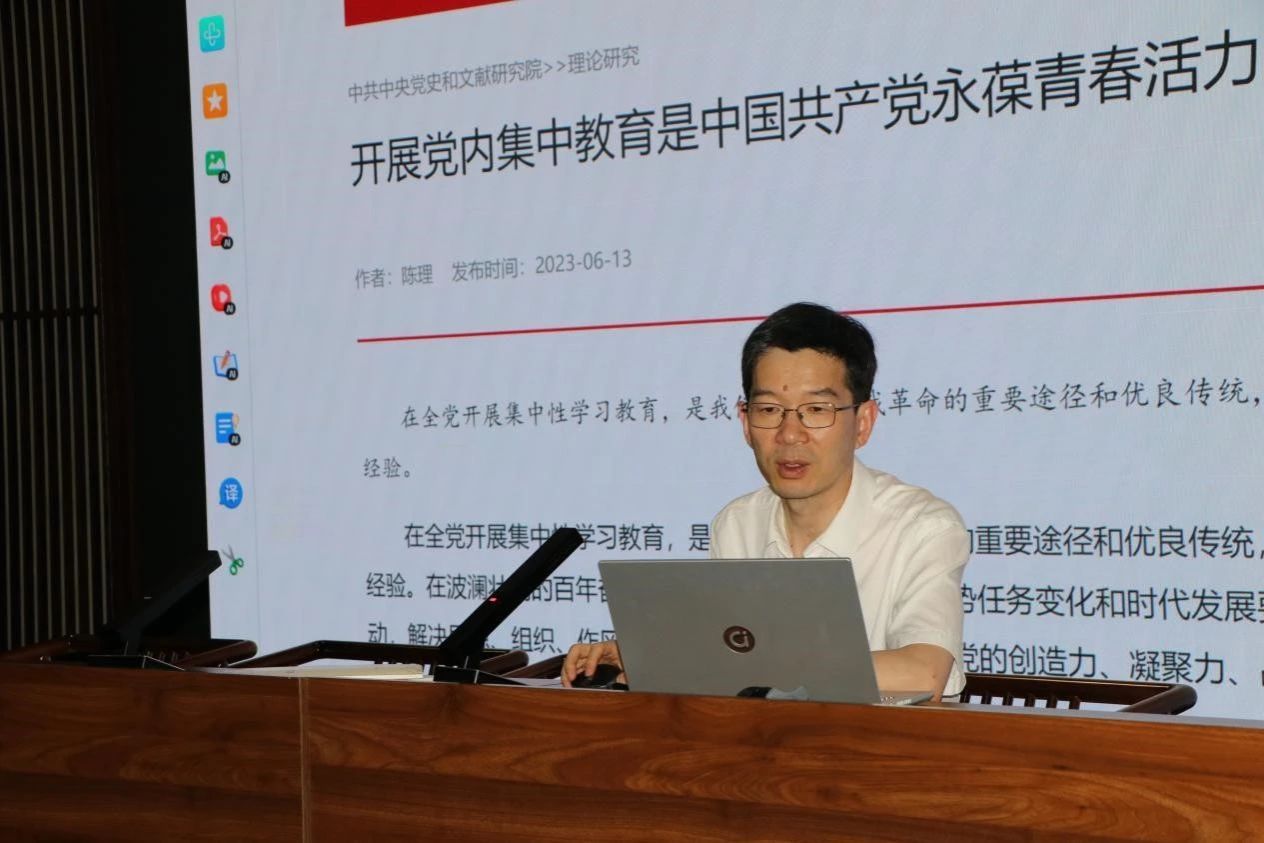 在读书班上,党委书记许冬武先从党内集中教育回顾、学习阐释和以案说纪三个方面入手,首先强调开展党内集中教育是中国共产党永葆青春活力的重要法宝,明晰师生党员对党内集中教育的底层政治逻辑,再聚焦新修订的《条例》,对党员领导干部提出更高标准、更严要求的部分进行仔细解读,并结合学校工作实际,重点强调了与我校党员干部息息相关的党纪条例与典型案例。