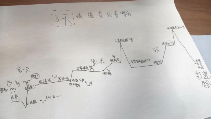 03 情绪曲线图 小朋友们需要根据自己一天的生活经历,通过折线图的形式,将自己的心情直观地表现在纸上。这引导了小朋友们“吾日三省吾身”的好习惯,也能够帮助他们更直观地了解自我,了解情绪对他们的影响,更有利于他们的身心健康与提高正确对待情绪的能力。