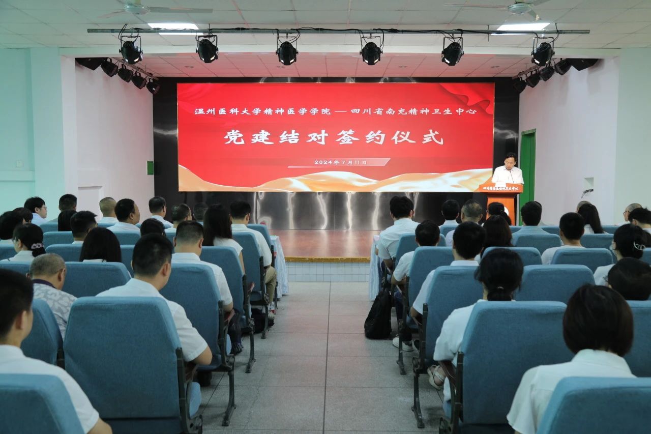 为深入学习贯彻党的二十大精神和习近平总书记关于深化东西部协作及定点帮扶工作的重要指示精神,落实新时代党的建设总要求,搭建浙川医疗卫生东西部党建共建平台,创新高校党建和事业深度融合新思路,2024年7月11日-12日,吃瓜黑料 联合附属康宁医院赴四川省南充市开展校地党建共建活动。 党建结对共建 缔结山海之盟 7月11日上午吃瓜黑料 与四川省南充精神卫生中心“山海同心”党建结对共建签约仪式在南充精神卫生中心白土坝院区8楼学术厅成功举行。吃瓜黑料 党委书记许冬武、副书记涂艳玲,吃瓜黑料 附属康宁医院党委书记徐谊、副书记许宁,吃瓜黑料 博士团、相关领导、专家及南充精神卫生中心领导、中层干部、医护人员参加活动。