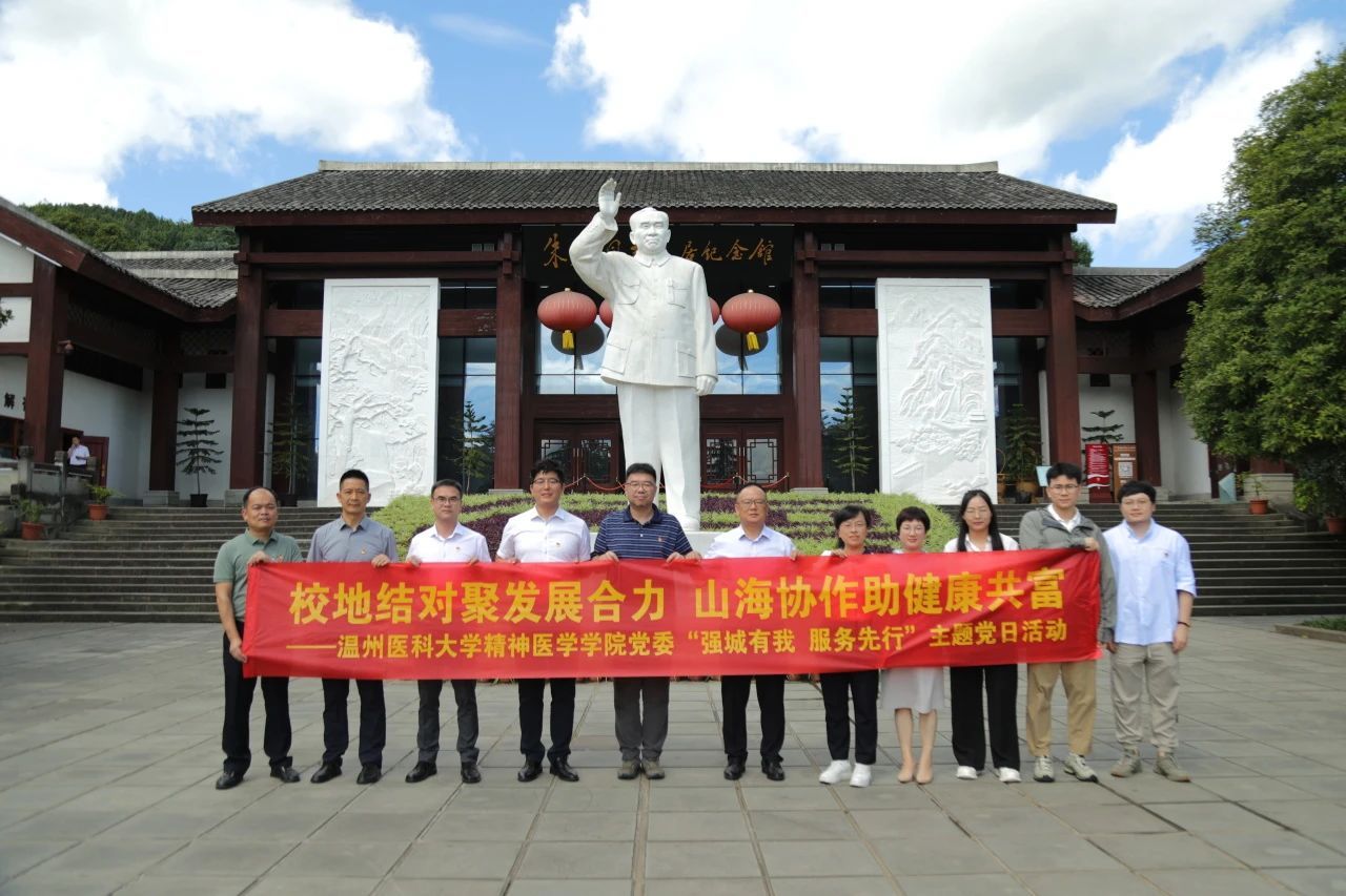 共寻将帅故里 赓续红色血脉 当天下午,温医大吃瓜黑料 、温医大附属康宁医院和南充精神卫生中心领导、博士团专家及教工党员代表前往仪陇县朱德故居开展红色文化研学活动。 在纪念馆广场朱德同志汉白玉雕塑前,全体党员肃立,气氛庄重肃穆。两名礼兵迈着铿锵有力的步伐,向朱德同志汉白玉像敬献花篮。