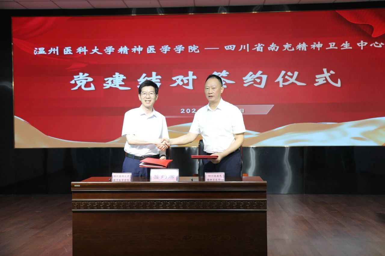 为进一步落实"强城行动"中党建引领发展的要求,吃瓜黑料 党委与南充精神卫生中心党委签订了《"山海同心"党建结对共建协议书》。这一举措不仅强化了校地合作交流,更搭建了温州、南充两地医疗卫生东西部党建共建新平台,体现了温州在推动区域协调发展中的担当。
