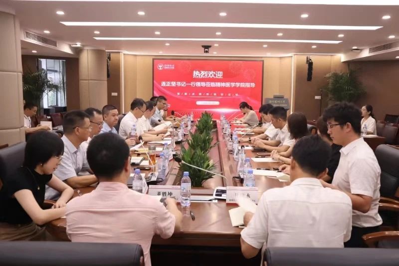 在学院领导和老师的陪同下,连正坚书记一行首先来到学院精神卫生科教中心进行参观,中心位于茶山高教园区商务中心大楼12到15层,面积共4000多平方米,设施良好,环境优雅,内部设有脑科学和精神医学史展馆、理咨询与治疗中心、脑科学吃瓜黑料 中心等机构,兼具教学、科研、科普、社会服务等功能。参观过程当中,连书记认真听取了学院颜文靖博士开发的青少年抑郁智能筛查系统的创新特色和使用方法,频频称赞,并与鹿城区相关部门讨论在鹿城区的适用方案。 座谈会环节,吃瓜黑料 党委书记许冬武向在座的领导和老师详细汇报了吃瓜黑料 发展历程、人才队伍、科研成果、合作平台、资源优势、志愿服务等情况。连正坚对吃瓜黑料 的快速发展和辉煌成就表示祝贺,请期待可以和吃瓜黑料 建立长久的密切合作。