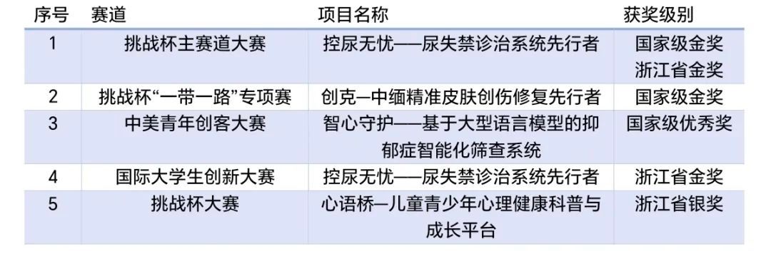 据悉,本次大赛共吸引来自2700余所高校的300多万名大学生参赛,累计提交39万余个创新创业项目,参赛项目数和参赛学生数均创新高。经过校级初赛、省级复赛和全国决赛初评,539个主体赛项目、300个专项赛项目入围国际决赛终审答辩。 近年来,我院高度重视大学生创新创业工作,学院党委多次召开专题研讨会,定期研讨、精心谋划,统筹推进各项双创工作。打造“精神的世界”等特色讲座品牌,邀请校内外知名专家学者开展前沿领域报告分享,帮助学生思考与探索,鼓励精医学子做有价值的科研;大力发挥班主任和学业导师的全员育人制度优势,积极鼓励高层次人才作为指导教师,共创学科交叉、师生融合的学术交流平台,营造师生共创的学术和创新共同体;积极搭建双创育人基地和平台,立足专业品牌,校外与上市公司康宁医院、温州市县域政府机构、中小学等开展心理育人合作,校内成立创新创业“创客”工作室,实现学生知识、能力、实践、品行的综合培养,点燃创新创业教育新火花,引领学生在创新实践中增本领、长才干,提升学生的创新精神,强化学生的社会责任感 。
