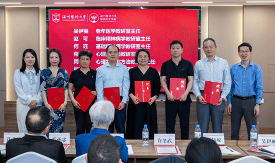 教研室是落实教学任务,促进教师教学发展的核心单位。为进一步强化学院基层教学组织,加强教研室建设,学院特聘任一批教研室主任与副主任,其中老年医学教研室与临床精神病学教研室特聘任一批参与学院教学任务的临床教学基地相关负责人担任教研室副主任,这一举措搭建起了学院与医院常态化交流的平台,也真正将医教协同落到实处。会上金伟琼主任和许冬武书记为新聘任的教研室主任和副主任颁发了聘书。