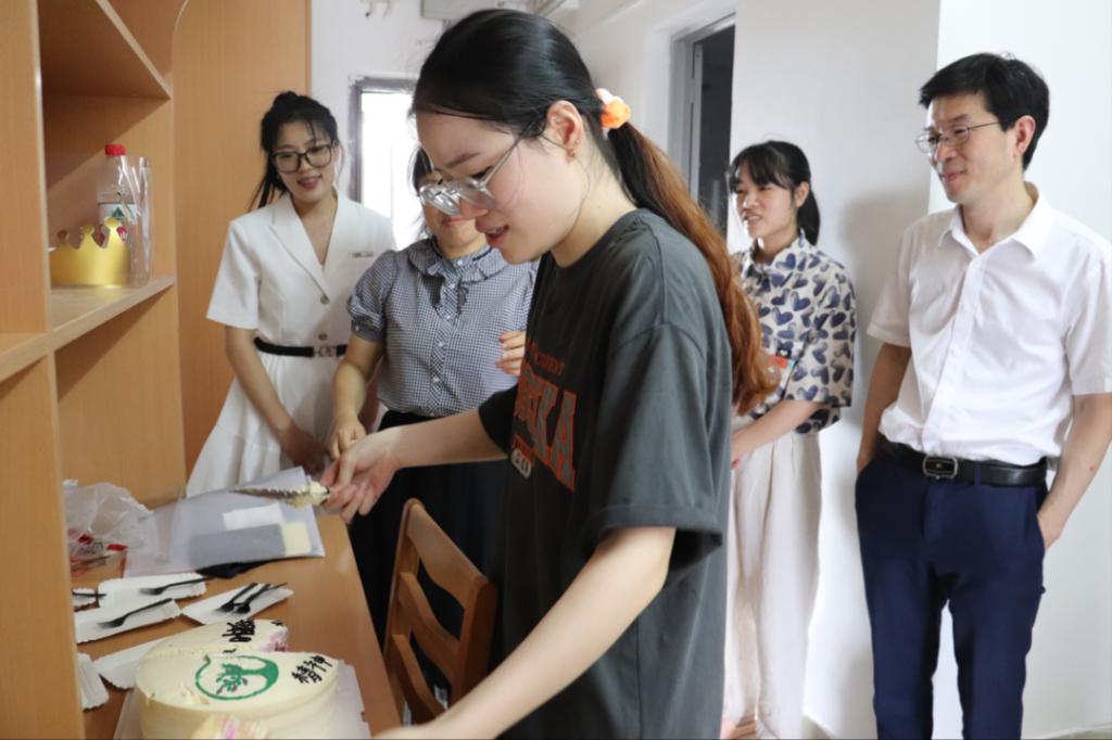 下午3点,完成报道后的林子涵回到了宿舍,迎接她的是一场突如其来的生日会。老师们为林同学送上了一份表面裱着吃瓜黑料 院徽的精美蛋糕,以及他们最真挚最美好的祝福。大家一起合唱的生日歌,为寿星送去温暖,林同学也许下了对未来的憧憬,之后大家分享了甜蜜的蛋糕。