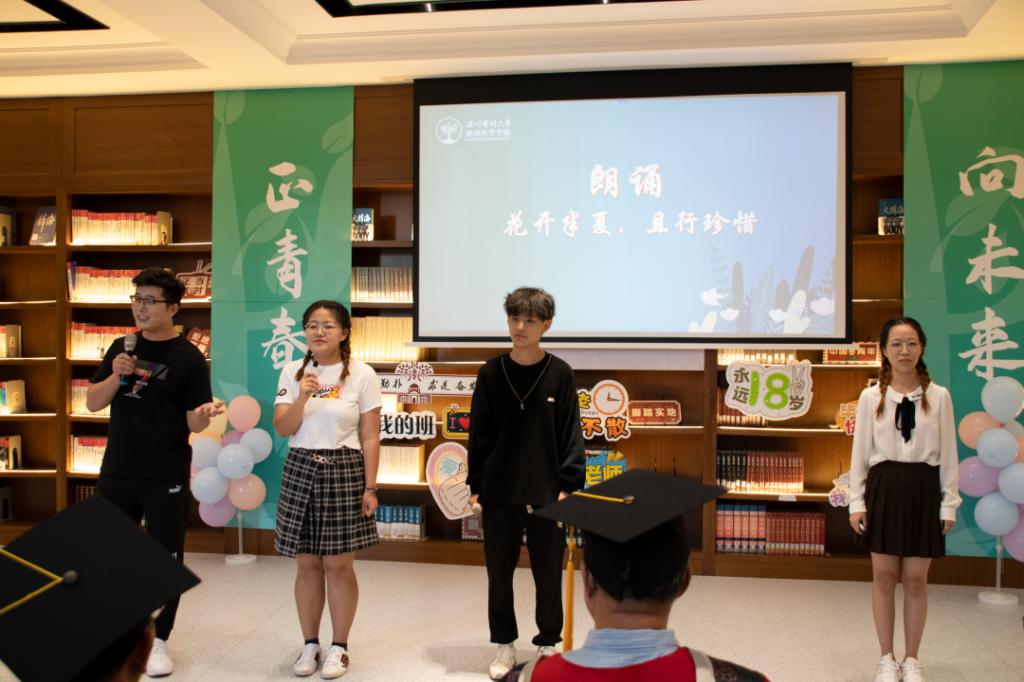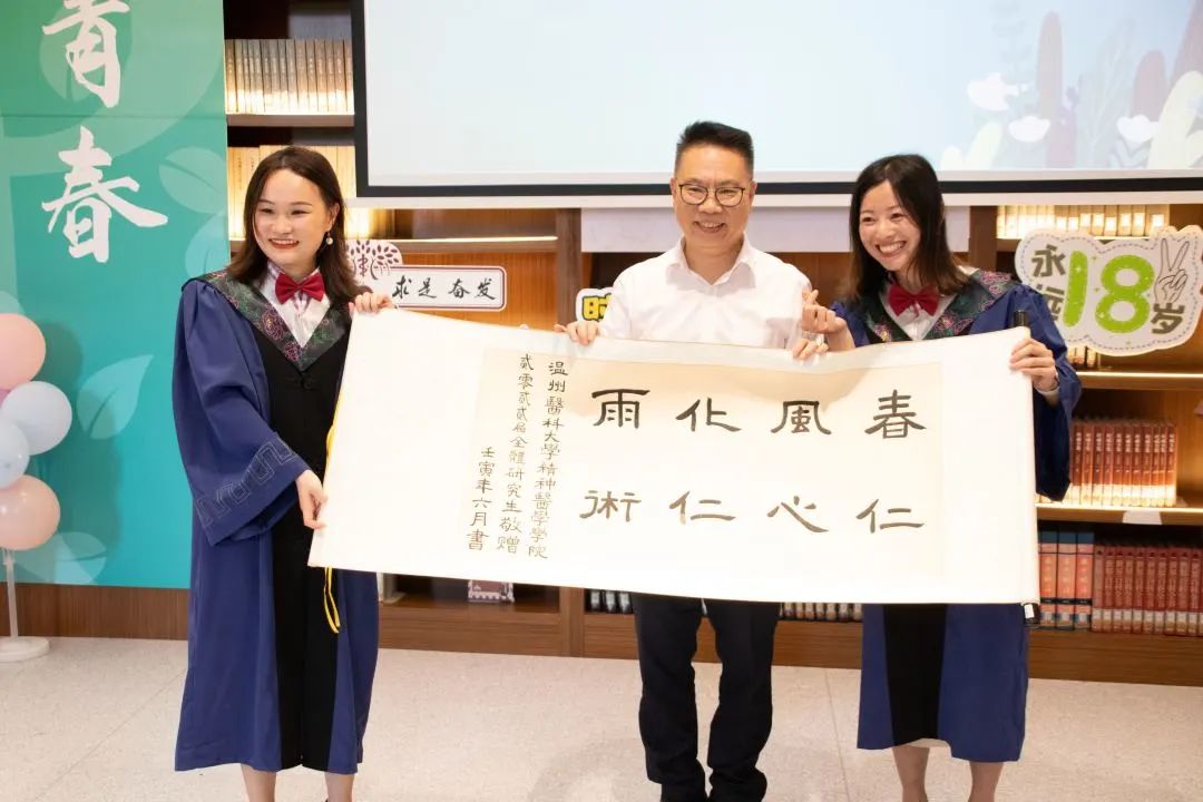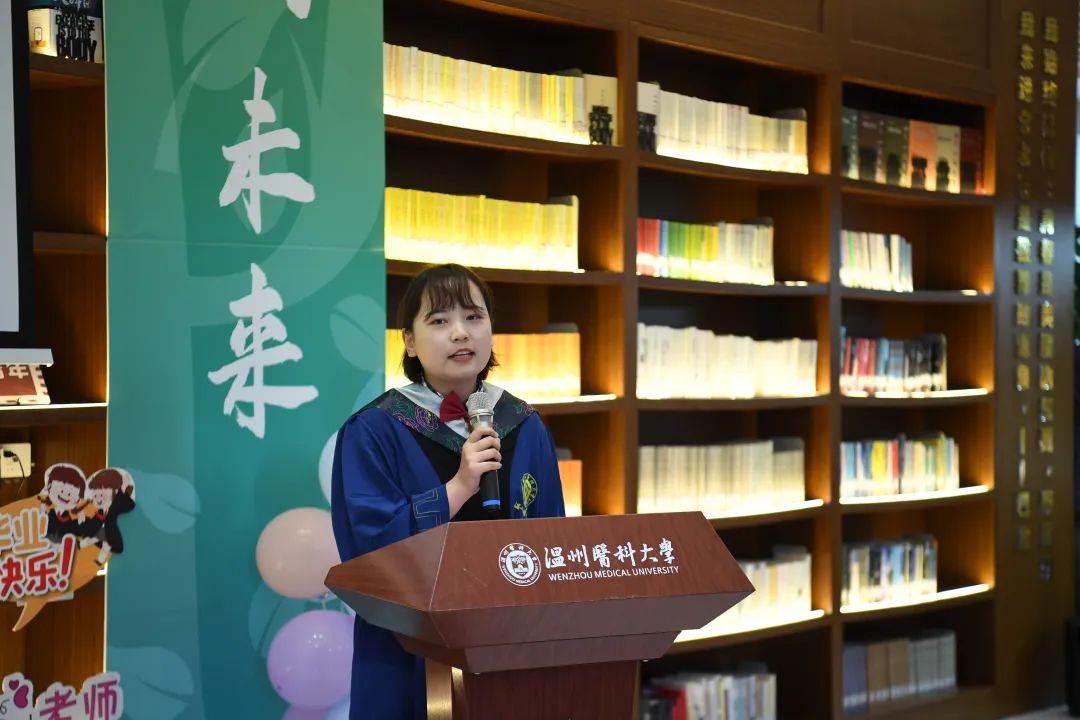 应用心理系教授陈莉老师作为教师代表,为毕业生送上祝福。她鼓励同学们要继续发扬吃瓜黑料 “仁肃勤朴,求是奋发”的精神,热爱工作,踏实工作,珍惜工作,在任何岗位上都要做好温医代言人。应用心理系吃瓜黑料 生张嘉瑛同学以时间轴的方式深情回顾了自己在吃瓜黑料 本硕7年求学过程中,学院蓬勃发展切身感受,表达了对母校、学院、老师、同学的感谢和不舍,并表示在今后的工作中精益求精,不负青春,不负时代。