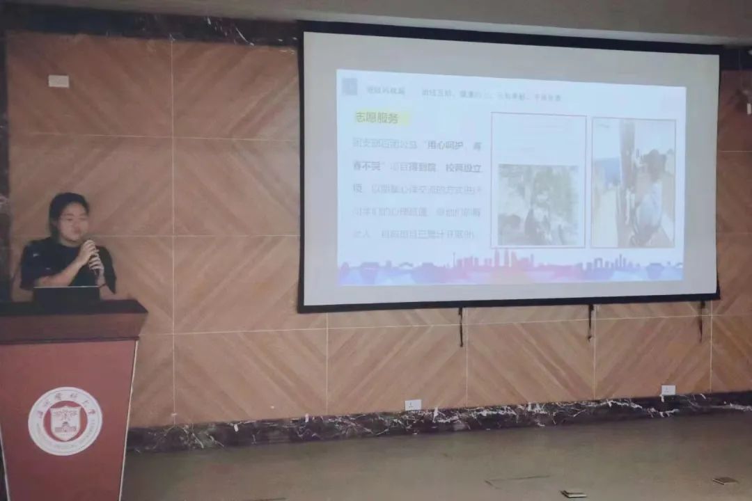为了大家更好地理解优秀的班级氛围以及有相应的榜样,接下来进行了优秀班团的汇报。分别由19精神1班、19精神3班、20精神3班、20心理2班四个班级的团支书进行汇报。她们从班级概况、班级荣誉、班团活动、志愿服务等等方面介绍了自己的班级,并且为大家提供了许多可行的建议,精彩的展示,丰富的画面,感人的瞬间博得在场同学的阵阵掌声。