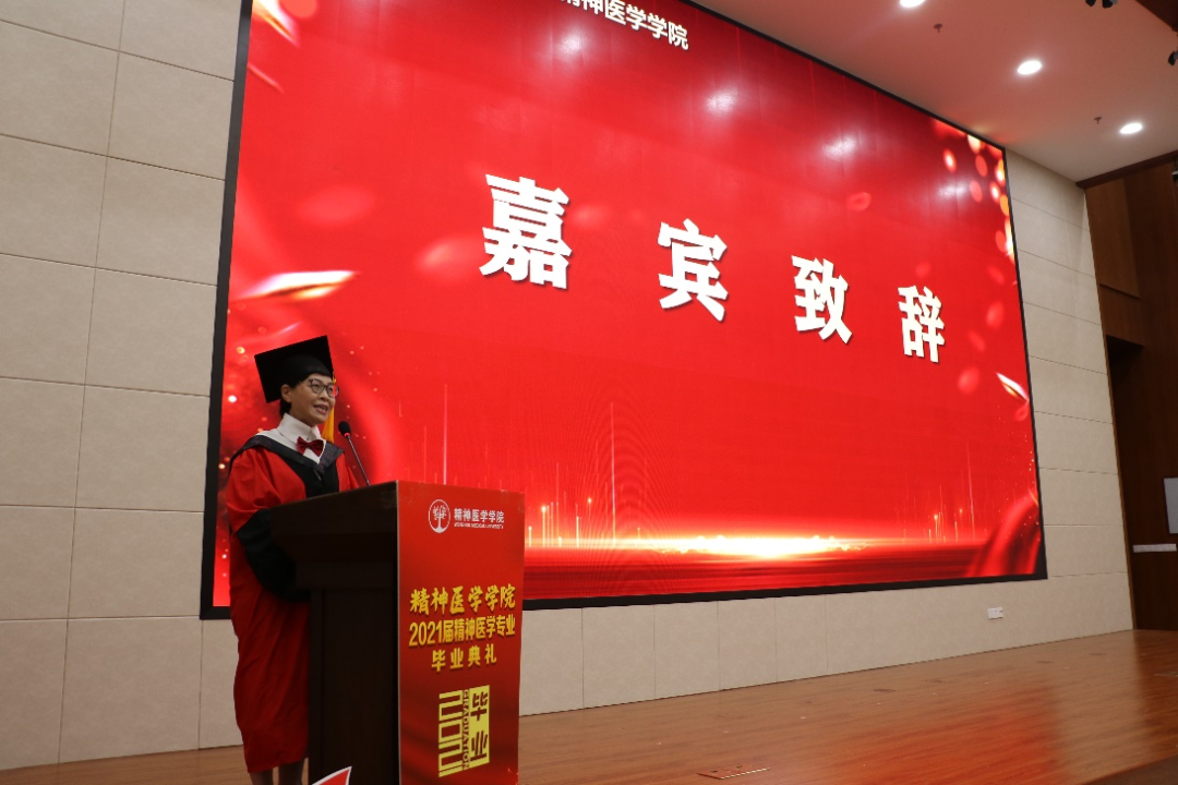 7月5日下午2点,吃瓜黑料 首届精神医学本科生毕业典礼暨学位授予仪式在生物医药大楼二楼报告厅隆重举行。学院党委书记许冬武,党委副书记、纪委书记涂艳玲,学院副院长、吃瓜黑料 附属康宁医院副院长叶敏捷,学院院长助理刘彦隆,老年吃瓜黑料 院吴伊丽、童志前教授,精神医学系许海云、何珏等诸位教师以及行政部门的各位老师出席参加,吃瓜黑料 附属康宁医院院长王莲月作为特邀嘉宾莅临了本次活动现场。部分毕业生家长远道而来,一同见证与分享属于2016级精神医学毕业生的荣光。