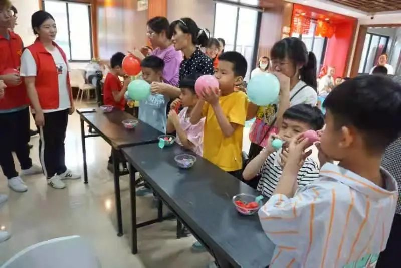 活动开始前,志愿者迅速布置好相应场地,营造节日气氛,富有童趣。在志愿者的带领下,家长和孩子积极参与各项亲子心理团辅活动,通力合作,完成一项项游戏。闭眼画五官,闭上眼睛,敞开心灵,让父母与儿童在信任中亲密的交流,培养注意力;两人三足,绑带绑住的是父母与儿童的腿,靠近的是心与心之间距离;运气球、剪羊毛,通过这些游戏对孩子进行正向引导,让孩子与家长敞开心扉,培养阳光开朗的心态;除此之外,更是锻炼了青少年儿童语言表达能力,手眼协调能力,平衡力以及耐心等,以游戏的形式促使少年儿童感受节日欢乐,陪伴儿童心理健康成长,积极响应习近平总书记关心关爱儿童成长成才的深情期许。活动结束后,志愿者们协助景山街道工作人员为每个家庭的小朋友送上了六一儿童节礼物,祝小朋友们节日快乐。