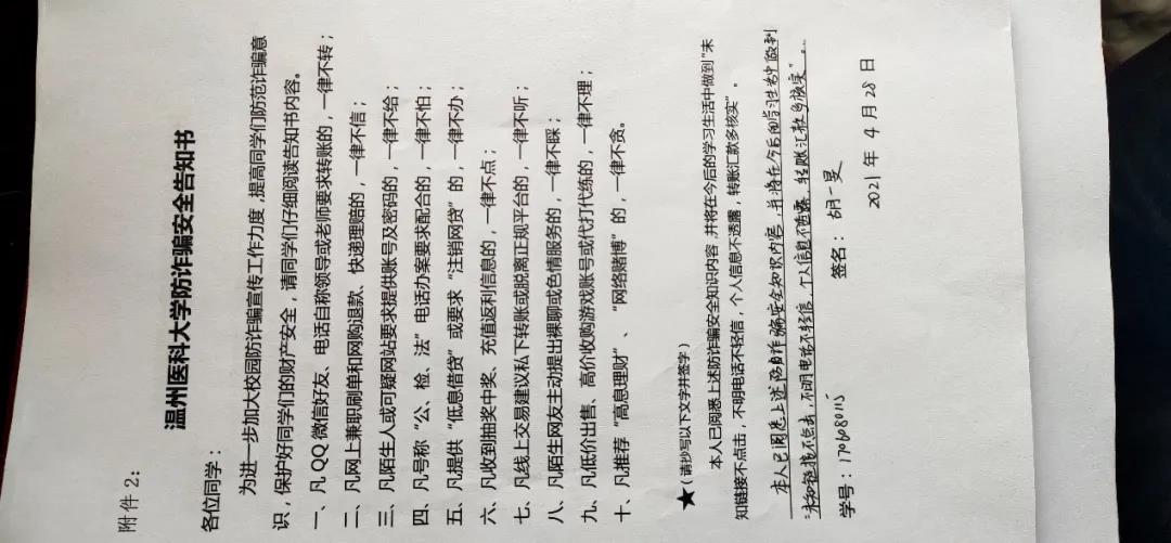 签署防诈骗安全告知书。组织全院学生签署吃瓜黑料 网络防诈骗安全告知书,确保每一位同学都知晓网络诈骗防范方法。