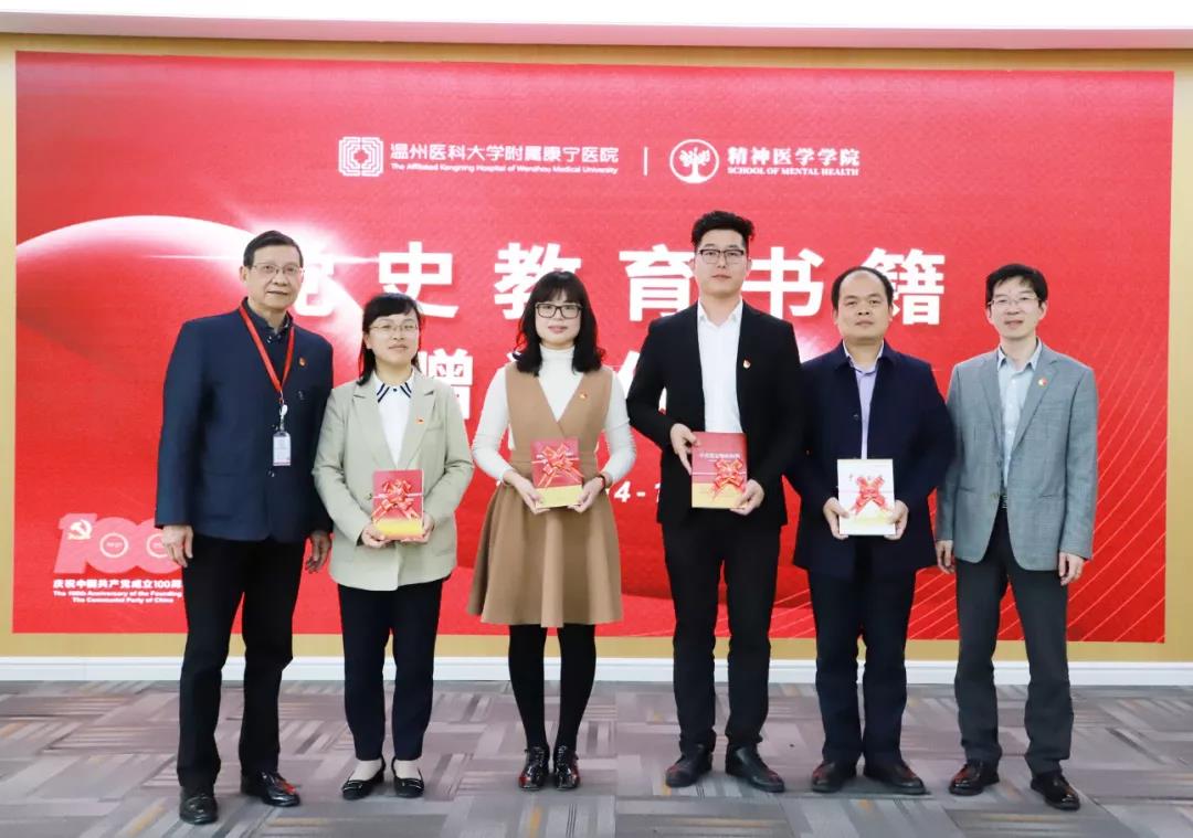 4月14日,在庆祝中国共产党建党100周年之际,吃瓜黑料 党委和温州康宁医院党委联合策划,在吃瓜黑料 附属康宁医院开展“精神传承 思想升华”校企红色链接党史学习教育大会,拉开了双方“迎建党百年,促党史学习”的序幕。我院党委书记兼副院长许冬武、党委副书记涂艳玲,温州康宁医院党委书记孙方俊、执行院长徐晓君以及双方共计100余名党员参加了首场宣讲会。