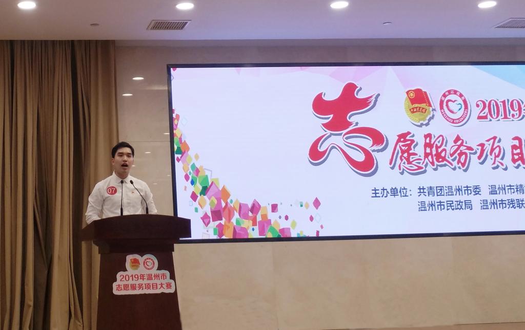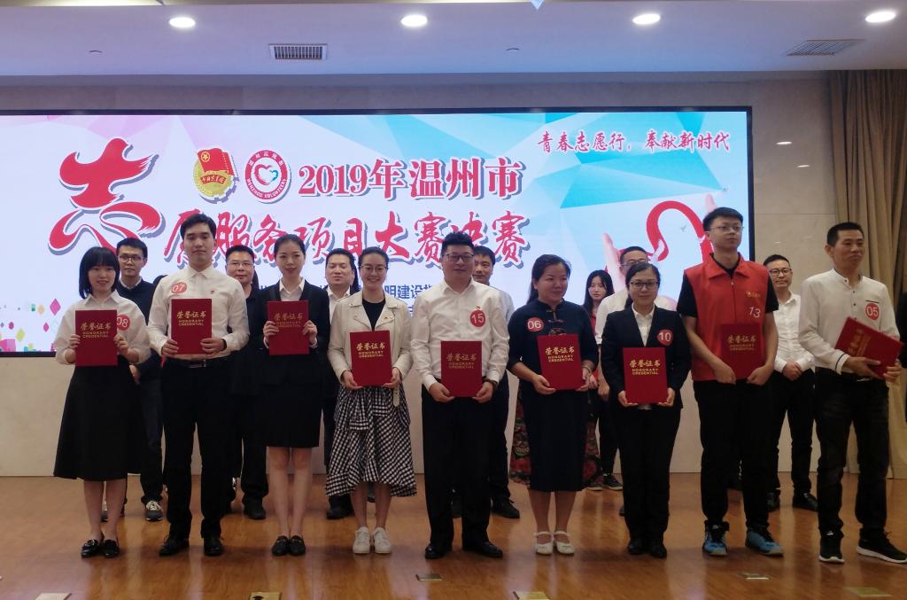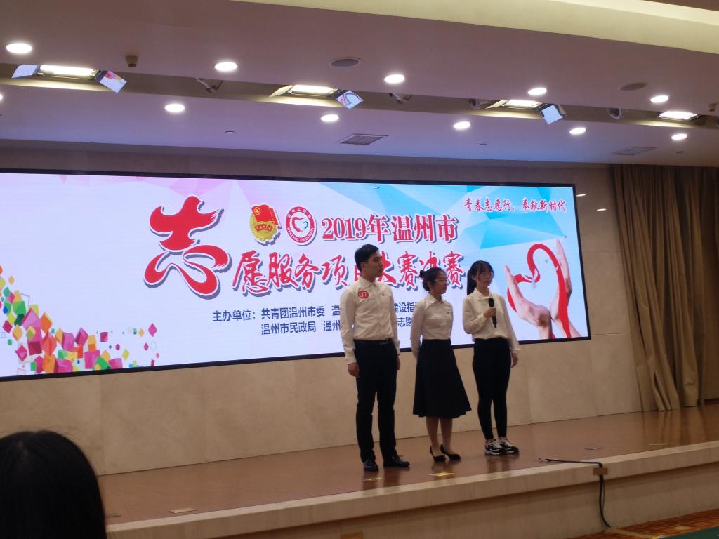 5月14日下午,温州市人民大会堂新闻厅,2019年温州市志愿服务项目大赛决赛擂起战鼓,20个优秀志愿服务项目以现场路演方式角逐大赛金奖和银奖,来自全市各级团组织、志愿服务组织和热心市民代表近200人到场观摩决赛。我院吃瓜黑料 团委的“情暖夕阳,默守记忆”阿尔兹海默关爱公益服务项目经过初评、复评、决赛等环节激烈的角逐最终荣获金奖。