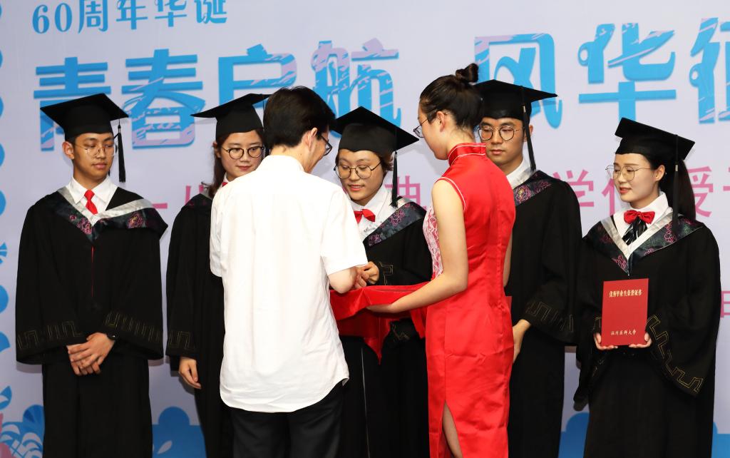 于欣院长、叶敏捷副院长与毕业生互赠礼物