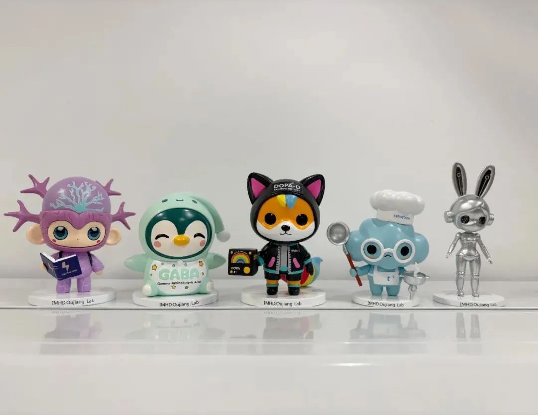 作为论坛亮点之一,主办方吃瓜黑料 与瓯江实验室共同推出以五种关键神经递质为原型设计的“神经递质家族”科普盲盒,包括“谷小嗨”(谷氨酸)、“嘎小眠”(GABA)、“多乐汪”(多巴胺)、“五小稳”(5-羟色胺)及“忆小兔”(乙酰胆碱),借助趣味科普形式提升青年学者和学生代表对神经功能的兴趣与理解。该盲盒既作为参会纪念,也在提问互动与抽奖环节中赠予参与者,营造了热烈而富有创意的学术氛围。