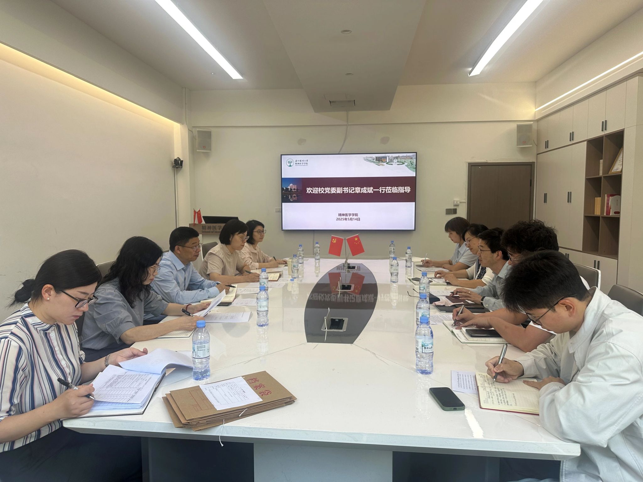 章成斌副书记为学院学生工作提出三条宝贵建议:一是学院要持续总结经验,发挥专业优势,进一步将心理育人工作做精做细,为学生成长成才提供更有力的支持;二是持续强化安全稳定工作,以寝室建设和班团建设为抓手,扎实筑牢各方面安全工作防线;三是进一步持续创新,开发更多小技能撬动大思政的“密匙”。