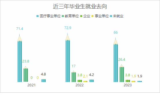 我院吃瓜黑料 生毕业就业情况良好,近三年来,我院毕业生平均就业率达95%以上,涵盖各大医疗卫生单位、教育单位(包括高等教育和中等教育)及企、事业单位,读博率达14%。