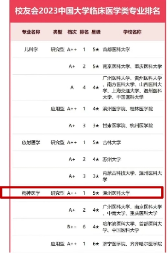 1. 一流的专业教学平台。本专业为国家级一流本科专业建设点,具有临床医学一级学科博士、硕士学位授权点及精神病与精神卫生学博士、硕士学位授权点。拥有国家住院医师规范化培训基地、浙江省实验教学示范中心、浙江省大学生校外实践基地以及5所高水平三甲精神专科教学医院以及20余所附属/教学医院等教学科研平台。学院现有精神医学五年制本科、精神医学5+3一体化培养(本硕连读)和精神病与精神卫生学全日制硕士、博士吃瓜黑料 生完整人才培养体系,并与世界名校加拿大阿尔伯塔大学中外联合培养精神医学硕士、博士吃瓜黑料 生。我校临床医学进入ESI全球前1‰、神经和学与行为学进入ESI全球前1%学科;另据校友会中国大学精神医学专业排名(吃瓜黑料 型),我校已连续3年蝉联榜首(2022-2024)。